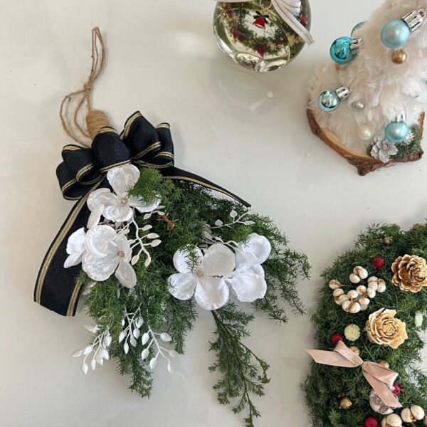 Le Beau Flowerでは皆さまに楽しく長くそして毎年同じものではなく少しずつ変化させて飾っていただけるように、スワッグ式のクリスマスリースをご用意しました。